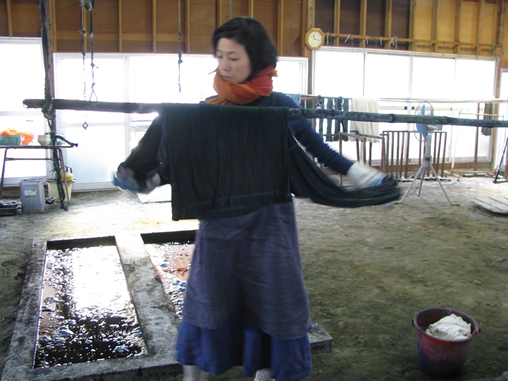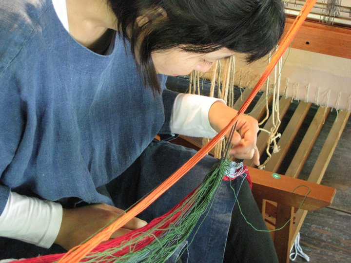 彼女は陽だまりの中で、麻の上着に刺し子をしている。